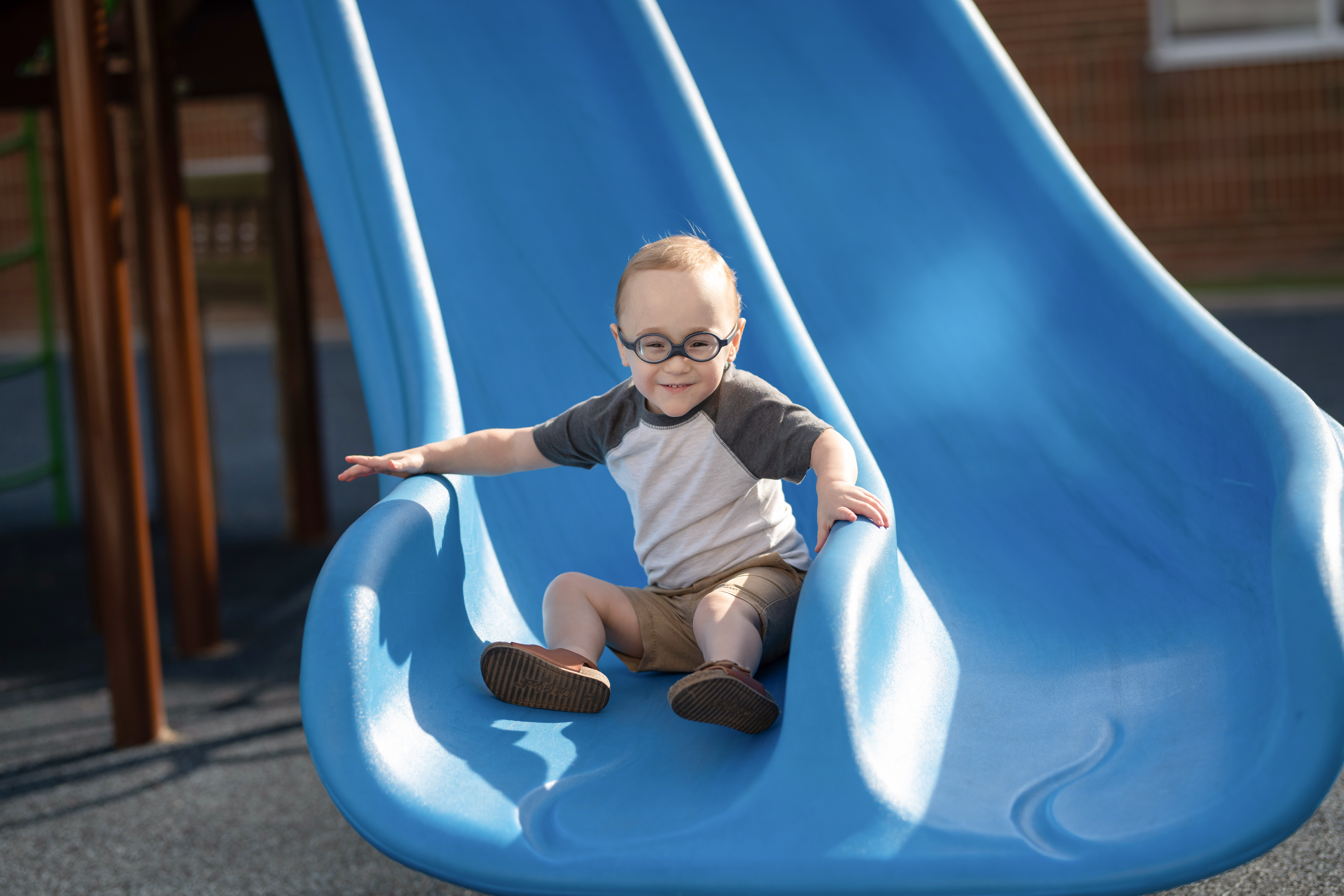 Today, Roman is an energetic toddler who loves animals and knock-knock jokes. He has been in physical, occupational, feeding, and speech therapies, and wears glasses to help with his vision loss.